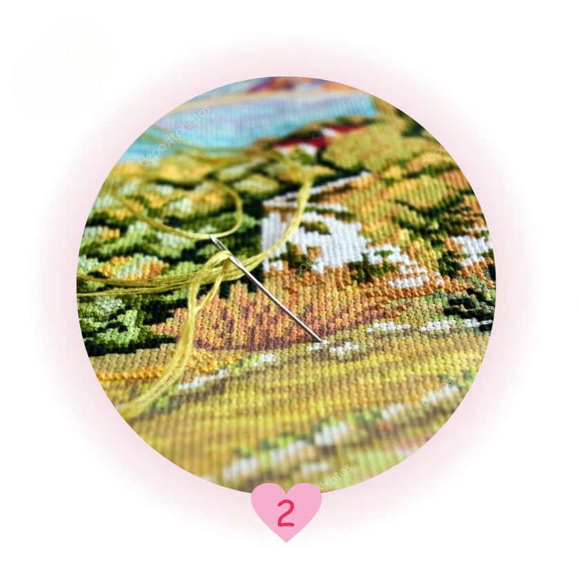 Toile en coton de qualité supérieur x1, les fils à broder, aiguilles x2, diagramme explicatif x1