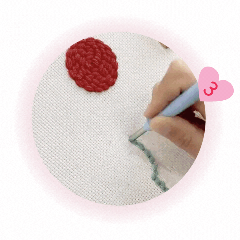 Toile de x1, Tambour en bois de 20cm x1, Les fils de laine colorés, Aiguille x1, Passe-fil x1