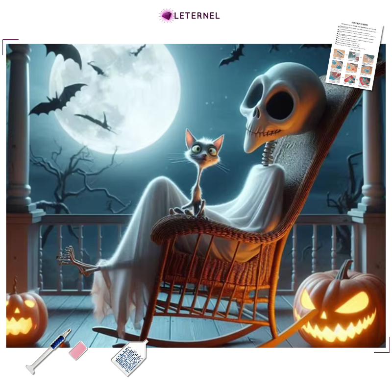 Broderie Diamant - Squelette et chat