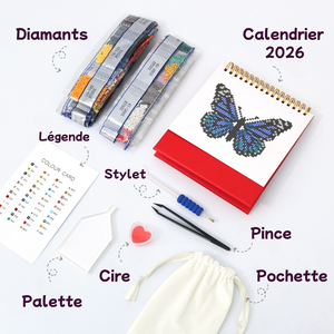 Découvrez le calendrier 2026 – Édition Papillon, une exclusivité qui transforme vos moments de diamond painting en une expérience unique. Chaque mois, réalisez un motif délicat et coloré inspiré de l’élégance des papillons, pour allier organisation et décoration.